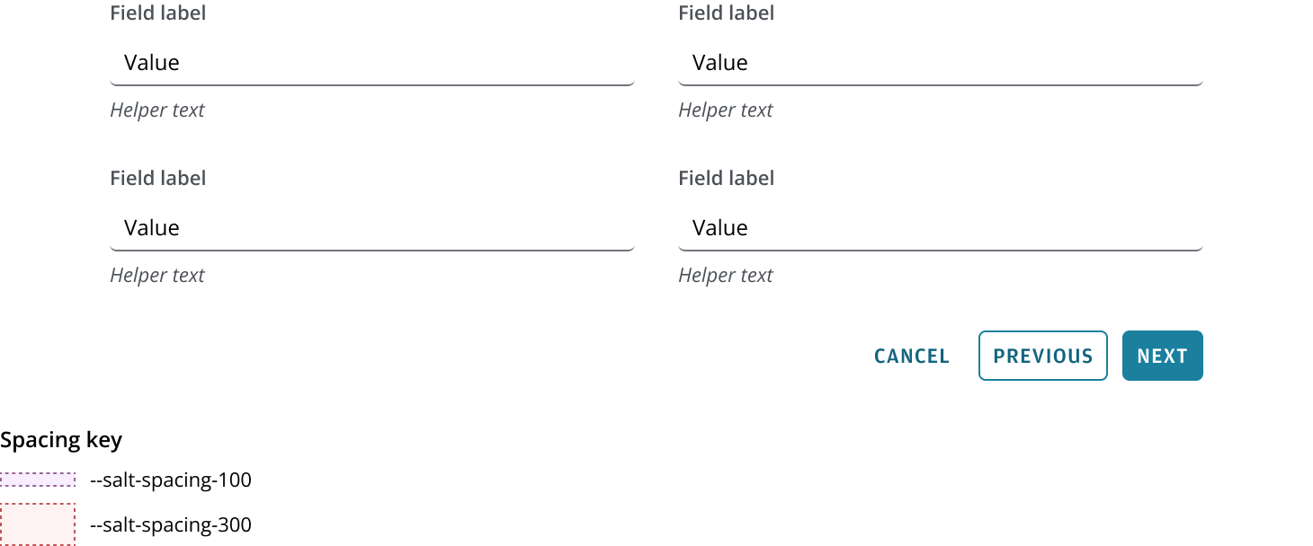 | Between buttons | --salt-spacing-100 |